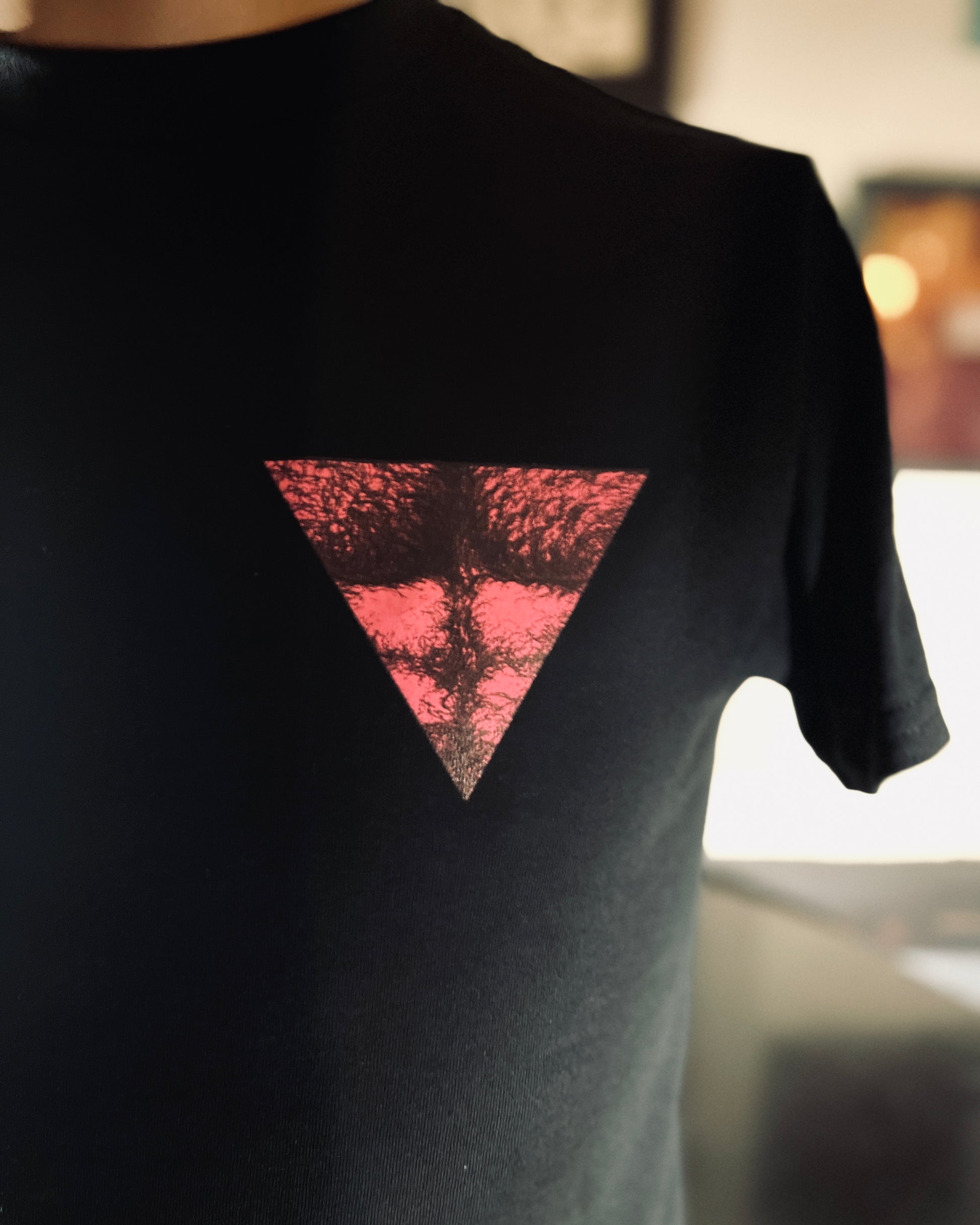 A smaller version of my pink hairy triangle image screen printed on a black, 100% heavy cotton Gildan t-shirt!